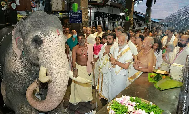 വഴിപാട് ആയി പത്തുലക്ഷം രൂപ; ഗുരുവായൂര് ക്ഷേത്രത്തില് പ്രതീകാത്മകമായി ആനയെ നടയിരുത്തി
