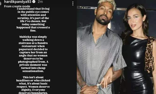 ഹാര്ദികിന്റെ കുറിപ്പിങ്ങനെ:'ഞാന് തിരഞ്ഞെടുത്ത ജീവിതത്തിന്റെ ഭാഗമാണെന്നതു കൊണ്ടുതന്നെ പൊതുജനമധ്യത്തില് ജീവിക്കുമ്പോള് ലഭിക്കുന്ന ശ്രദ്ധയും നിരന്തരമുള്ള വിചാരണയും എനിക്ക് നന്നായറിയാം. പക്ഷേ ഇന്ന് അതിരുവിട്ട ചിലത് ഇന്ന് സംഭവിച്ചു. ബാന്ദ്രയിലെ ഒരു റസ്റ്ററന്റില് നിന്നും മഹിക സ്റ്റെപ്പുകളിറങ്ങി വരികയായിരുന്നു. അപ്പോള് പാപ്പരാസികള് അവളുടെ ചിത്രം പ്രത്യേക ആംഗിളില് നിന്ന് പകര്ത്താന് ശ്രമിച്ചു. ലോകത്തൊരു സ്ത്രീയും ആഗ്രഹിക്കുന്ന തരത്തിലുള്ള ചിത്രമായിരുന്നില്ല അത്. തരം താഴ്ന്ന സെന്സേഷണലിസത്തിനായി സ്വകാര്യ നിമിഷത്തെ ഉപയോഗിച്ചു.
