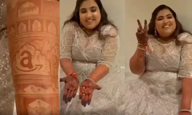 ആമസോണ് വഴി പ്രണയം, വിവാഹം; ജീവിത പങ്കാളിയെ നല്കിയതിന് നന്ദി സൂചകമായി മെഹന്തിയില് ലോഗോ ഉള്പ്പെടുത്തി യുവതി; 'ആമസോണിയന്സ് വിവാഹിതരാകുമ്പോള്' എന്ന കുറിപ്പോടെ വീഡിയോ ഔദ്യോഗിക ഇന്സ്റ്റഗ്രാം പേജില്