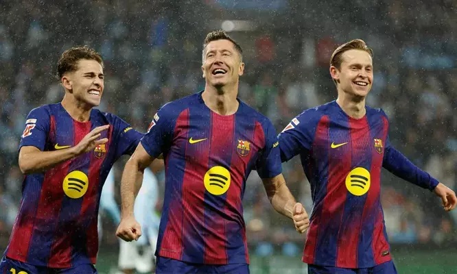 വിഗോ: ലാ ലിഗയിൽ സെൽറ്റാ വിയോയ്ക്കെതിരെ 4-2ന് തകർപ്പൻ ജയം നേടി ബാഴ്സലോണ. റോബർട്ട് ലെവൻഡോവ്സ്കിയുടെ ഹാട്രിക്കും ലാമിൻ യമാലിന്റെ ഒരു ഗോളുമാണ് ബാഴ്സലോണയുടെ തകർപ്പൻ വിജയം സമ്മാനിച്ചത്. ലീഗ് ടേബിളിൽ ഒന്നാം സ്ഥാനത്തുള്ള റയൽ മാഡ്രിഡിനോക്കാൾ മൂന്ന് പോയിന്റ് പിന്നിലാണ് ബാഴ്സലോണ.