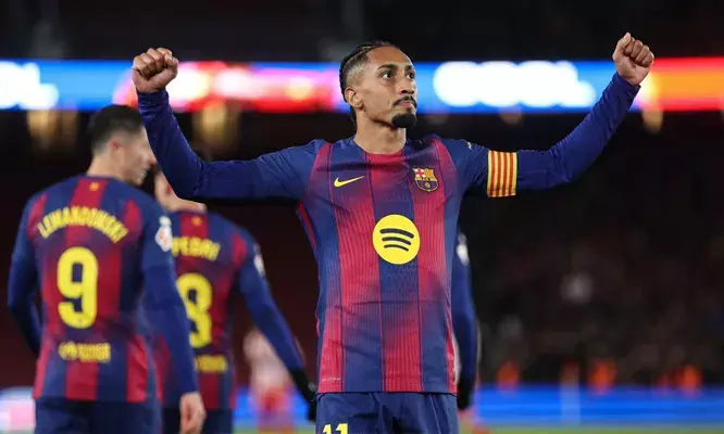 മഡ്രിഡ്: സ്പാനിഷ് ലാ ലിഗയിൽ ബാഴ്സലോണക്ക് തകർപ്പൻ ജയം. കരുത്തരായ അത്ലറ്റികോ മഡ്രിഡിനെ ഒന്നിനെതിരെ മൂന്ന് ഗോളുകൾക്ക് തകർത്ത് ബാഴ്സലോണ ലീഗ് പട്ടികയിൽ ഒന്നാം സ്ഥാനം നിലനിർത്തി. നൂകാംപിൽ നടന്ന ഈ വിജയം ലീഗിൽ അവരുടെ തുടർച്ചയായ അഞ്ചാം ജയമാണിത്. റഫീഞ്ഞയുടെ മികച്ച പ്രകടനമാണ് ടീമിന് വിജയ വഴിതെളിയിച്ചത്.