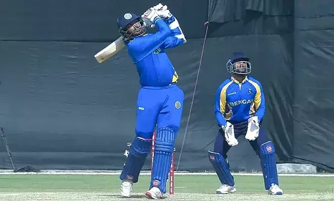 രാജ്കോട്ട്: വിജയ് ഹസാരെ ട്രോഫിയിൽ ബംഗാളിനെതിരായ മത്സരത്തിൽ ഇരട്ട സെഞ്ച്വറി നേടി ഹൈദരാബാദ് ഓപ്പണർ അമൻ റാവു. അടുത്തിടെ നടന്ന ഐപിഎൽ 2026 താരലേലത്തിൽ 30 ലക്ഷം രൂപയ്ക്ക് രാജസ്ഥാൻ റോയൽസ് സ്വന്തമാക്കിയ 21-കാരനായ അമൻ, രാജ്കോട്ടിലെ നിരഞ്ജൻ ഷാ സ്റ്റേഡിയത്തിൽ നടന്ന മത്സരത്തിൽ 154 പന്തിൽ നിന്ന് 200 റൺസ് നേടി. 12 ഫോറുകളും 13 സിക്സറുകളും ഉൾപ്പെട്ട അദ്ദേഹത്തിന്റെ പ്രകടനം ഹൈദരാബാദിനെ 5 വിക്കറ്റ് നഷ്ടത്തിൽ 352 റൺസെന്ന കൂറ്റൻ സ്കോറിലെത്തിച്ചു.