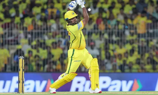 ചെന്നൈ: ഐപിഎല്ലിൽ ഡൽഹി ക്യാപിറ്റൽസിനെതിരെ ബാറ്റിങ് വെടിക്കെട്ടുമായി ചെന്നൈ സൂപ്പർ കിംഗ്സ്. ഓപ്പണർ സഞ്ജു സാംസണിന്റെ ഉജ്ജ്വല സെഞ്ചുറിയുടെ കരുത്തിൽ ചെന്നൈ നിശ്ചിത 20 ഓവറിൽ 2 വിക്കറ്റ് മാത്രം നഷ്ടത്തിൽ 212 റൺസെന്ന പടുകൂറ്റൻ സ്കോർ പടുത്തുയർത്തി. ഡൽഹി ബൗളർമാരെ നിഷ്പ്രഭരാക്കിയ ബാറ്റിങ് പ്രകടനമാണ് ചെന്നൈ കാഴ്ചവെച്ചത്.