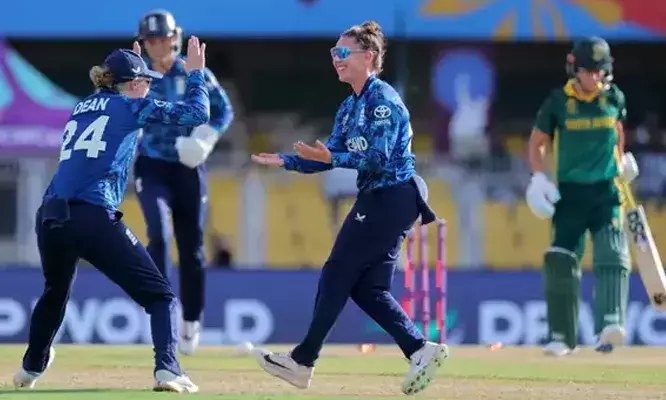 ഗുവാഹത്തി: വനിതാ ഏകദിന ലോകകപ്പിൽ ദക്ഷിണാഫ്രിക്കയ്ക്കെതിരെ ഇംഗ്ലണ്ടിന് അനായാസ ജയം. പത്ത് വിക്കറ്റിനായിരുന്നു ഇംഗ്ലണ്ടിന്റെ വിജയം. ടോസ് നഷ്ടപ്പെട്ട് ബാറ്റിംഗിനിറങ്ങിയ ദക്ഷിണാഫ്രിക്ക വെറും 20.4 ഓവറിൽ 69 റൺസിന് എല്ലാവരും പുറത്തായി. 36 പന്തുകളിൽ നിന്ന് 22 റൺസെടുത്ത സിനാലോ ജാഫ്ത മാത്രമാണ് ദക്ഷിണാഫ്രിക്കൻ നിരയിൽ രണ്ടക്കം കണ്ടത്. മറുപടി ബാറ്റിംഗിൽ ഇംഗ്ലണ്ട് 14.1 ഓവറിൽ വിക്കറ്റുകൾ നഷ്ടപ്പെടാതെ വിജയ ലക്ഷ്യം സ്വന്തമാക്കി.