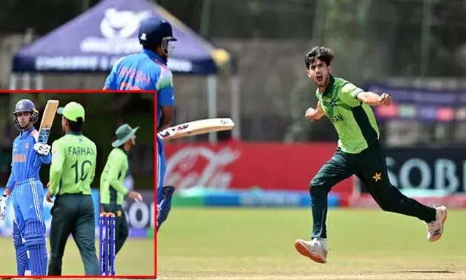ടോസ് നഷ്ടപ്പെട്ട് ബാറ്റിംഗിനിറങ്ങിയ ഇന്ത്യക്ക് വൈഭവ് സൂര്യവൻഷിയും ആരോൺ ജോർജും ചേർന്ന് ഭേദപ്പെട്ട തുടക്കമാണ് നൽകിയത്. ഓപ്പണിംഗ് വിക്കറ്റിൽ ഇരുവരും 47 റൺസ് കൂട്ടിച്ചേർത്തു. എന്നാൽ, നാല് പന്തുകൾക്കിടെ മൂന്ന് വിക്കറ്റുകൾ നഷ്ടപ്പെട്ടത് ഇന്ത്യക്ക് കനത്ത തിരിച്ചടിയായി. സയ്യാം എറിഞ്ഞ എട്ടാം ഓവറിലെ നാലാം പന്തിൽ വൈഭവ് വിക്കറ്റ് കീപ്പർ ഹംസ സഹൂറിന് ക്യാച്ച് നൽകി പുറത്തായി. തൊട്ടുപിന്നാലെ ക്രീസിലെത്തിയ ക്യാപ്റ്റൻ ആയുഷ് മാത്രെ നേരിട്ട രണ്ടാം പന്തിൽ റണ്ണൊന്നുമെടുക്കാതെ മടങ്ങി. ഒൻപതാം ഓവറിലെ ആദ്യ പന്തിൽ മലയാളി താരം ആരോൺ ജോർജും മടങ്ങിയതോടെ ഇന്ത്യ 47 റൺസിന് മൂന്ന് വിക്കറ്റ് എന്ന നിലയിലായി.