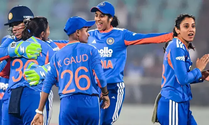 ഇന്ത്യൻ പ്ലേയിംഗ് ഇലവൻ: സ്മൃതി മന്ദാന, ഷഫാലി വർമ, ജെമീമ റോഡ്രിഗസ്, ഹർമൻപ്രീത് കൗർ (ക്യാപ്റ്റൻ), റിച്ച ഘോഷ് (വിക്കറ്റ് കീപ്പർ), ദീപ്തി ശർമ, അമൻജോത് കൗർ, വൈഷ്ണവി ശർമ, ക്രാന്തി ഗൗദ്, രേണുക സിംഗ് താക്കൂർ, ശ്രീ ചരണി.