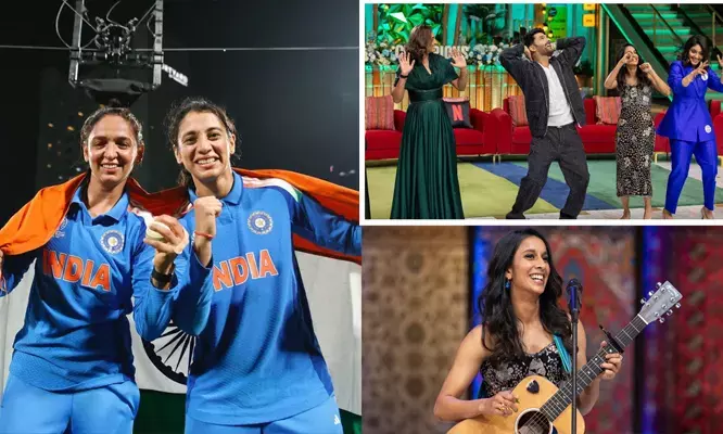 ന്യൂഡൽഹി: ഇന്ത്യൻ വനിതാ ക്രിക്കറ്റ് ടീം ക്യാപ്റ്റൻ ഹർമൻപ്രീത് കൗർ ലോകകപ്പ് ട്രോഫി ഏറ്റുവാങ്ങുംമുമ്പ് നടത്തിയ ഭാംഗ്ര നൃത്തച്ചുവടുകൾ ടീം വൈസ് ക്യാപ്റ്റൻ സ്മൃതി മന്ദാനയുടെ നിർബന്ധത്തിന് വഴങ്ങിയായിരുന്നെന്ന് ഇന്ത്യൻ താരം ജെമീമ റോഡ്രിഗസ്. നൃത്തം ചെയ്തില്ലെങ്കിൽ ഹർമൻപ്രീതിനോട് പിന്നീട് മിണ്ടില്ലെന്ന് സ്മൃതി 'ഭീഷണിപ്പെടുത്തിയതായും' ജെമീമ 'ദ ഗ്രേറ്റ് ഇന്ത്യൻ കപിൽ ഷോ'യിൽ പറഞ്ഞു.