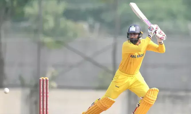 ടോസ് നഷ്ടപ്പെട്ട് ആദ്യം ബാറ്റ് ചെയ്ത തമിഴ്നാടിനായി ഓപ്പണറായി ഇറങ്ങിയ ജഗദീശൻ 126 പന്തിൽ 9 ഫോറും 5 സിക്സും ഉൾപ്പെടെ 139 റൺസാണ് നേടിയത്. എസ് ആർ ആതിഷുമായി ചേർന്ന് ഒന്നാം വിക്കറ്റിൽ 17.4 ഓവറിൽ 86 റൺസിൻ്റെ മികച്ച കൂട്ടുകെട്ട് തമിഴ്നാടിന് മികച്ച തുടക്കം നൽകി. ആതിഷ് 33 റൺസെടുത്തു പുറത്തായി. പിന്നീട് ആന്ദ്രെ സിദ്ധാർത്ഥ് (27), ഭൂപതി വൈഷ്ണവ് കുമാർ (35) എന്നിവരുമായും ജഗദീശൻ നിർണായക കൂട്ടുകെട്ടുകൾ പടുത്തുയർത്തി. ബാബ ഇന്ദ്രജിത്ത് 13 റൺസെടുത്ത് പുറത്തായി. തമിഴ്നാടിനെ 250 കടത്തിയ ശേഷമാണ് ജഗദീശൻ മടങ്ങിയത്.