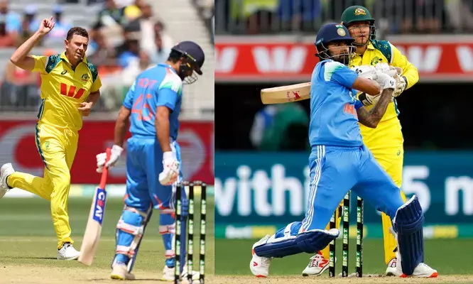 പെര്ത്തില് മഴ, വിക്കറ്റ് മഴ! 26 ഓവറായി ചുരുക്കിയിട്ടും തകര്ന്നടിഞ്ഞ് ഇന്ത്യന് ബാറ്റിങ് നിര; നിരാശപ്പെടുത്തി രോ - കോ തിരിച്ചുവരവ്; ആദ്യ ഏകദിനത്തില് ഓസ്ട്രേലിയയ്ക്ക് 131 റണ്സ് വിജയലക്ഷ്യം