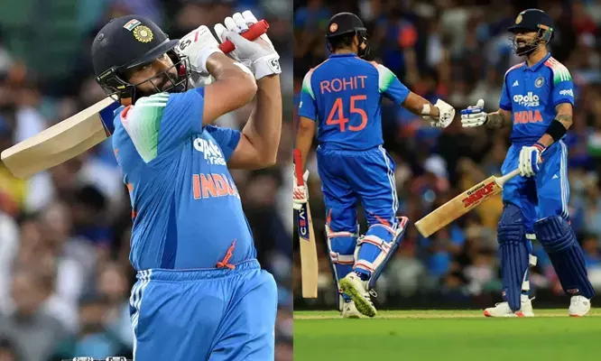237 റണ്സ് വിജയലക്ഷ്യത്തിലേക്ക് ബാറ്റുവീശിയ ഇന്ത്യക്കായി ക്യാപ്റ്റന് ശുഭ്മാന് ഗില്ലും രോഹിത് ശര്മയും ചേര്ന്ന് ഓപ്പണിംഗ് വിക്കറ്റില് 69 റണ്സടിച്ച് നല്ല തുടക്കമാണ് നല്കിയത്. തുടക്കം മുതല് ആത്മവിശ്വാസത്തോടെ ബാറ്റുവീശിയ രോഹിത് ആദ്യ ഓവറിലെ മൂന്നാം പന്തില് മിച്ചല് സ്റ്റാര്ക്കിനെ ബൗണ്ടറി കടത്തിയാണ് തുടങ്ങിയത്. സ്റ്റാര്ക്കിന്റെ രണ്ടാം ഓവറിലും ബൗണ്ടറി നേടിയ രോഹിത് ഹേസല്വുഡിനെ കരുതലോടെയാണ് നേരിട്ടത്. ആദ്യ രണ്ടോവറില് ഹേസല്വുഡ് ഒരു റണ് മാത്രമാണ് വഴങ്ങിയത്. സ്റ്റാര്ക്കിന്റെ മൂന്നാം ഓവറില് രണ്ട് ബൗണ്ടറിയടക്കം 11 റണ്സാണ് രോഹിത് നേടിയത്. പിന്നാലെ നഥാന് എല്ലിസിന്റെ ഓവറില് ഇന്ത്യ 13 റണ്സ് നേടിയതോടെ ആദ്യ അഞ്ചോവറില് 35 റണ്സെടുത്തു.