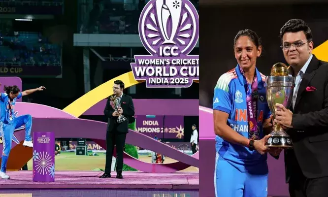 ഇപ്പോഴിതാ ലോകകപ്പ് ട്രോഫി സ്വീകരിക്കാന് ഐസിസി ചെയര്മാന് ജയ് ഷായ്ക്ക് അരികിലെത്തുന്ന ഇന്ത്യന് ക്യാപ്റ്റന് ഹര്മന്പ്രീതിന്റെ വീഡിയോയാണ് വൈറലാവുന്നത്. പോഡിയത്തില് നൃത്തം ചെയ്ത് ജയ് ഷായുടെ അടുത്തെത്തിയതും ഹര്മന് അദ്ദേഹത്തിന്റെ കാലില് തൊട്ട് അനുഗ്രഹം വാങ്ങാന് ശ്രമിക്കുകയായിരുന്നു. വിജയത്തില് അഭിനന്ദിച്ച് ജയ് ഷാ ഹസ്തദാനം ചെയ്തപ്പോഴായിരുന്നു താരം കാലില് തൊടാനായി ശ്രമിച്ചത്. എന്നാല് ജയ്ഷാ ഇത് സ്നേഹപൂര്വം നിരസിക്കുകയായിരുന്നു.