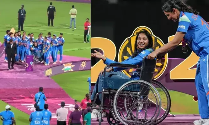 ഐസിസി ചെയര്മാന് ജയ് ഷായില് നിന്ന് ക്യാപ്റ്റന് ഹര്മന്പ്രീത് കൗര് ലോകകപ്പ് കിരീടം ഏറ്റുവാങ്ങിയ ശേഷം ടീമിന്റെ വിജയം ആഘോഷിക്കാനായി ടീം അംഗങ്ങളെല്ലാം വേദിയിലേക്ക് കയറിയപ്പോള് അവര്ക്കൊപ്പം വീല്ചെയറിലിരുന്ന് ആഘോഷിക്കാന് പ്രതികയുമെത്തി. വൈസ് ക്യാപ്റ്റന് സ്മൃതി മന്ദാനയാണ് പ്രതികയെ വേദിയിലേക്ക് വീല് ചെയറിയില് തള്ളിക്കൊണ്ടുവന്നത്. ടീം അംഗങ്ങള്ക്കൊപ്പം വിജയാഘോഷത്തില് പങ്കെടുത്തശേഷം നല്കിയ അഭിമുഖത്തില് പ്രതിക കണ്ണീരണിഞ്ഞു. മത്സരശേഷം എക്സ് പോസ്റ്റിലൂടെ ഇന്ത്യയുടെ കിരീടനേട്ടത്തിലെ സന്തോഷം 24കാരിയായ പ്രതിക പങ്കുവെക്കുകയും ചെയ്തു.