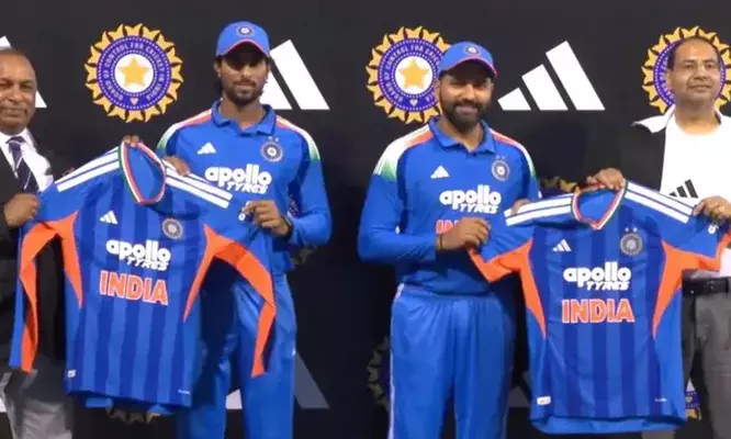 ഓറഞ്ചും നീലയും വെള്ള നിറവും ഇടകലര്ന്ന പുതിയ ജേഴ്സി; ഇന്ത്യയുടെ ട്വന്റി 20 ലോകകപ്പ് ജേഴ്സി പുറത്തിറക്കി രോഹിത് ശര്മ