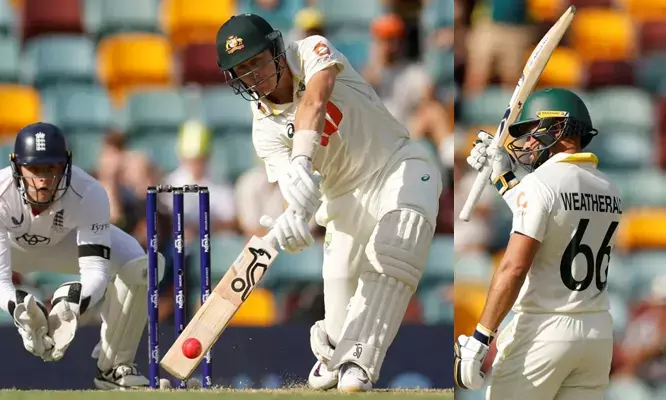 ഓസീസിനായി ഓപ്പണര്മാരായ ജേക്ക് വെതറാള്ഡും ട്രാവിസ് ഹെഡും ചേര്ന്ന് മിന്നുന്ന തുടക്കമാണ് നല്കിയത്. ഓപ്പണിംഗ് വിക്കറ്റില് ഇരുവരും ചേര്ന്ന് 79 പന്തില് 77 റണ്സടിച്ചു. ജോഫ്ര ആര്ച്ചറുടെ പന്തില് ട്രാവിസ് ഹെഡിനെ ജാമി സ്മിത്ത് തുടക്കത്തിലെ കൈവിട്ടത് ഇംഗ്ലണ്ടിന് തിരിച്ചടിയായി. ഹെഡ് മടങ്ങിയശേഷം ക്രീസിലെത്തിയ ലാബുഷെയ്നും വെതറാള്ഡിനൊപ്പം നിലയുറപ്പിച്ചതോടെ അതിവേഗം സ്കോര് ചെയ്ത ഓസീസ് ഓവറില് 6 റണ്സിന് മുകളില് അടിച്ച് 100 കടന്നു. 45 പന്തിലാണ് വെതറാള്ഡ് കന്നി ടെസ്റ്റ് അര്ധസെഞ്ചുറി തികച്ചത്.