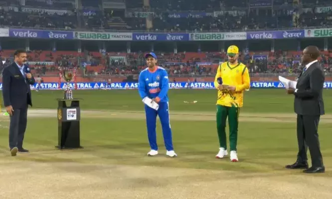 ആദ്യ മത്സരം തോറ്റ ടീമില് ദക്ഷിണാഫ്രിക്ക മൂന്ന് മാറ്റങ്ങള് വരുത്തി. കേശവ് മഹാരാജും ട്രിസ്റ്റന് സ്റ്റബ്സും ആന്റിച്ച് നോര്ക്യയയും പ്ലേയിംഗ് ഇലവനില് നിന്ന് പുറത്തായപ്പോള് റീസ ഹെന്ഡ്രിക്കസും ജോര്ജ് ലിന്ഡെയും ഓട്നീല് ബാര്ട്മാനും ദക്ഷിണാഫ്രിക്കയുടെ പ്ലേയിംഗ് ഇലവനിലെത്തി. ആദ്യ മത്സരം കളിച്ച ടീമില് മാറ്റങ്ങളൊന്നുമില്ലാതെയാണ് ഇന്ത്യ രണ്ടാം മത്സരത്തിനുമിറങ്ങുന്നത്. മലയാളി താരം സഞ്ജു സാംസണ് ഇന്നും പ്ലേയിംഗ് ഇലവനില് ഇടം നേടാനായില്ല. വിക്കറ്റ് കീപ്പറായി ജിതേഷ് ശര്മ പ്ലേയിംഗ് ഇലവനില് സ്ഥാനം നിലനിര്ത്തിയപ്പോള് ഓപ്പണറായി വൈസ് ക്യാപ്റ്റന് ശുഭ്മാന് ഗില് തുടരും.