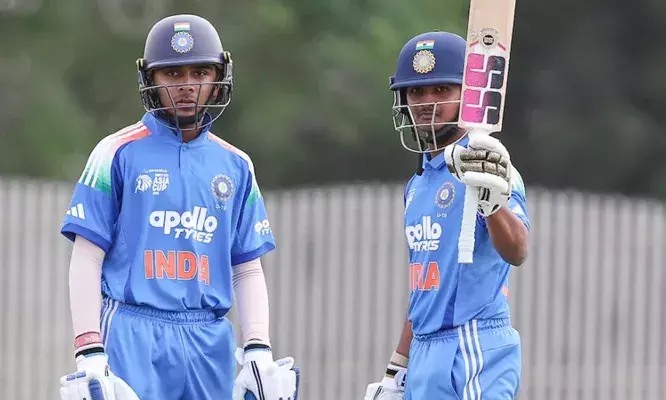 അത്ര നല്ലതായിരുന്നില്ല ഇന്ത്യയുടെ തുടക്കം. രണ്ടാം ഓവറില് തന്നെ മാത്രെ മടങ്ങി. സത്നകുമാരന്റെ പന്ത് അതിര്ത്തി കടത്താനുള്ള ശ്രമത്തിനിടെ മിഡ് ഓണില് ഡീസ് പത്രോ ക്യാച്ചെടുക്കുകയായിരുന്നു. അഞ്ചാം ഓവറില് മല്ഹോത്രയും പവലിയനില് തിരിച്ചെത്തി. അക്രമിന്റെ ഔട്ട്സ്വിങ്ങറില് ഹബാറ്റ് വച്ച താരം സ്ലിപ്പില് മുഹമ്മദ് ആലിഫിന് ക്യാച്ച് നല്കുകയായിരുന്നു. പിന്നാലെ വൈഭവ് അര്ധ സെഞ്ചുറി പൂര്ത്തിയാക്കി. എന്നാല് അധിക നേരം ക്രീസില് തുടരാന് വൈഭവിന് സാധിച്ചില്ല. അക്രമിനെതിരെ ലോംഗ് ഓഫിലൂടെ സിക്സടിക്കാന് ശ്രമിക്കുന്നതിനിടെ ബൗണ്ടറി ലൈനില് ക്യാച്ച് നല്കി. 26 പന്തുകള് നേരിട്ട താരം മൂന്ന് സിക്സും അഞ്ച് ഫോറും നേടി.