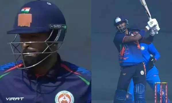 മത്സരത്തിന്റെ 39ാം ഓവറില് വിദര്ഭയുടെ സ്പിന്നര് പാര്ഥ് റേഖഡെ പന്തെറിയാനെത്തിയപ്പോള് ആദ്യ അഞ്ചു പന്തുകളും നിലം തൊടാതെ ബൗണ്ടറി കടന്നു. അവസാനത്തെ ഒരു പന്തു ഫോറും കൂടി നേടിയതോടെ ഈ ഓവറില് മാത്രം പാണ്ഡ്യ അടിച്ചത് 34 റണ്സ്!. മിഡ് വിക്കറ്റിലേക്കും ലോങ് ഓണിനു മുകളിലൂടെയുമായിരുന്നു സിക്സുകളില് ഭൂരിഭാഗവും അതിര്ത്തി കടന്നത്. സഹതാരങ്ങള് താളം കണ്ടെത്താന് ബുദ്ധിമുട്ടുമ്പോഴായിരുന്നു രാജ്കോട്ടില് പാണ്ഡ്യയുടെ വണ്മാന് ഷോ. 26 റണ്സടിച്ച വിഷ്ണു സോളങ്കിയാണ് ബറോഡയുടെ രണ്ടാമത്തെ മികച്ച സ്കോറര്.