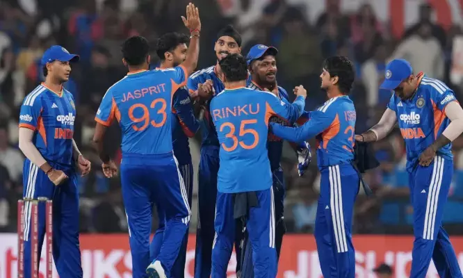 നേരത്തേ ടോസ് നഷ്ടപ്പെട്ട് ആദ്യം ബാറ്റ് ചെയ്ത ഇന്ത്യ അഭിഷേക് ശര്മയുടെയും റിങ്കു സിങ്ങിന്റെയും മികവില് 20 ഓവറില് ഏഴു വിക്കറ്റ് നഷ്ടത്തില് 238 റണ്സെടുത്തിരുന്നു. ഓപ്പണര് അഭിഷേക് ശര്മയുടെ വെടിക്കെട്ട് ബാറ്റിങ്ങായിരുന്നു ഇന്ത്യന് ഇന്നിങ്സിന്റെ പ്രത്യേകത. വെറും 35 പന്തുകള് നേരിട്ട അഭിഷേക് എട്ടു സിക്സും അഞ്ച് ഫോറുമടക്കം 84 റണ്സെടുത്തു.
