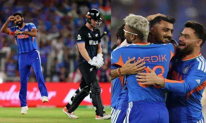 സെമിഫൈനലില് ദക്ഷിണാഫ്രിക്കയെ പറപറത്തിയ സെഞ്ചറി വീരനായ ഓപ്പണര് ഫിന് അലന്റെ വിക്കറ്റ് തുടക്കത്തിലെ വീഴ്ത്തിയാണ് ഇന്ത്യ വിക്കറ്റ് വേട്ട ആരംഭിച്ചത്. 7 പന്തില് 9 റണ് എടുത്ത് നില്ക്കെ അക്സര്പട്ടേലാണ് അലനെ വീഴ്ത്തിയത്. മൂന്നാം ഓവറില് തിലക് വര്മയുടെ കൈകളില് എത്തിച്ച് അക്ഷര് പട്ടേലാണ് അലനെ പുറത്താക്കിയത്. രചിന് രവീന്ദ്രയും തുടക്കത്തില് പുറത്തായി. 2 പന്തില് 1 റണ്സ് മാത്രമായിരുന്നു രചിന്റെ സമ്പാദ്യം. ജസ്പ്രീത് ബുമ്രയുടെ ബോളില് ഇഷാന് കിഷന്റെ കിടിലന് ക്യാച്ചിലാണ് രചിന് പുറത്തായത്. അഞ്ചാം ഓവറില് ഗ്ലെന് ഫിലിപ്സിനെ ബൗള്ണ്ടാക്കി അക്ഷര് അടുത്ത പ്രഹരവരും നല്കി. ആഭ്യന്തര മത്സരത്തില് ഗുജറാത്ത് താരങ്ങളായ അക്സറിന്റെയും ബുമ്രയുടെയും ഹോ ഗ്രൗണ്ടില് ലോക്കല് ബോയ്സിനെ വിളിച്ച ക്യാപ്റ്റന്റെ തന്ത്രം ഫലം കണ്ടു. പവര്പ്ലേ അവസാനിക്കുമ്പോള് 3ന് 52 എന്ന നിലയിലായിരുന്നു ന്യൂസീലന്ഡ്. എട്ടാം ഓവറില് ചാപ്മാനെ ബൗള്ഡാക്കി ഹാര്ദിക് കിവീസിന്റെ അടുത്ത വിക്കറ്റ് വീഴ്ത്തി. വരുണ് ചക്രവര്ത്തി എറിഞ്ഞ തൊട്ടടുത്ത ഓവറില് മിന്നുംഫോമില് കളിച്ച സെയ്ഫര്ട്ടിനെ ബൗണ്ടറി ലൈനിനു സമീപം ഇഷാന് കിഷന് കിടിലന് ക്യാച്ചിലൂടെ കയ്യിലൊതുക്കി. ഇതോടെ 8.1 ഓവറില് 5ന് 72 എന്ന നിലയിലേക്ക് കിവീസ് തകര്ന്നു. ആറാം വിക്കറ്റില് ഒന്നിച്ച ഡാരില് മിച്ചല് ക്യാപ്റ്റന് മിച്ചല് സാന്റ്നര് സഖ്യമാണ് കിവീസിനെ വലിയ തകര്ച്ചയില്നിന്നു രക്ഷിച്ചത്. ഇരുവരും ചേര്ന്ന് 52 റണ്സാണ് കൂട്ടിച്ചേര്ത്തത്. എന്നാല് വിജയത്തിലേക്ക് ആ ബാറ്റിങ് മതിയാകുമായിരുന്നില്ല. അടുത്തടുത്ത പന്തുകളില് ജെയിംസ് നീഷാമിനെയും മാറ്റ് ഹെന്റിയെയും വീഴ്ത്തിയ ബുമ്ര പൊരുതിനിന്ന സാന്റനറിയെും എറിഞ്ഞിട്ട് ഇന്ത്യ ജയം ഉറപ്പിച്ചു.