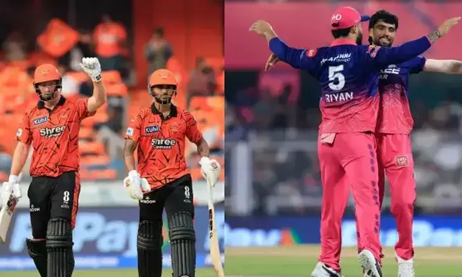 ഹൈദരാബാദ്: ഐപിഎല്ലിലെ ആവേശപ്പോരാട്ടത്തിൽ കരുത്തരായ രാജസ്ഥാൻ റോയൽസും സൺറൈസേഴ്സ് ഹൈദരാബാദും നേർക്കുനേർ. ഹൈദരാബാദിലെ ഉപ്പൽ സ്റ്റേഡിയത്തിൽ ടോസ് നേടിയ രാജസ്ഥാൻ നായകൻ റിയാൻ പരാഗ് ബൗളിങ് തിരഞ്ഞെടുക്കുകയായിരുന്നു. ഈ സീസണിൽ കളിച്ച നാല് മത്സരങ്ങളും വിജയിച്ച് പോയിന്റ് പട്ടികയിൽ അജയ്യരായി മുന്നേറുന്ന രാജസ്ഥാനെ തളയ്ക്കുക എന്ന കടുത്ത ദൗത്യമാണ് ഹൈദരാബാദിന് മുന്നിലുള്ളത്.