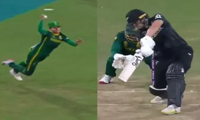 കവറിൽ പന്ത് ലോഫ്റ് ചെയ്ത് ന്യൂസിലൻഡ് ബാറ്റർ; കവറിൽ ഉയർന്ന് ചാടി ഒരു കൈകൊണ്ട് ക്യാച്ചെടുത്ത് ദക്ഷിണാഫ്രിക്കൻ ക്യാപ്റ്റൻ; ടൂർണമെന്റിലെ ഏറ്റവും മികച്ച ക്യാച്ച് ഇതാവുമെന്ന് ആരാധകർ; വൈറലായി വീഡിയോ