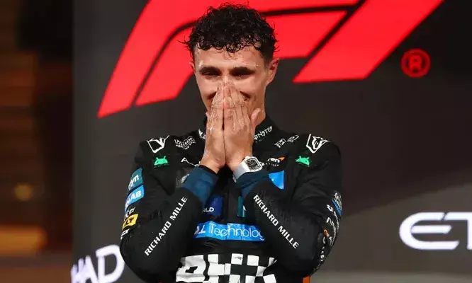 പോഡിയത്തിൽ വിങ്ങിപ്പൊട്ടി കണ്ണീരണിഞ്ഞ നോറിസ്, ഇത് തന്റെ കരിയറിലെ ഏറ്റവും വലിയ സ്വപ്നമായിരുന്നുവെന്ന് പറഞ്ഞു. "ഇത് ഒരു നീണ്ട യാത്രയായിരുന്നു. പിന്തുണച്ച എന്റെ ടീം അംഗങ്ങൾക്കും മാതാപിതാക്കൾക്കും വലിയ നന്ദിയുണ്ട്. ഞാനും മക്ലാരനും വർഷങ്ങളായി ഒരുമിച്ച് കഠിനാധ്വാനം ചെയ്യുകയായിരുന്നു. ഈ നേട്ടം അവർക്ക് വേണ്ടി സമർപ്പിക്കുന്നു," നോറിസ് പ്രതികരിച്ചു. ഈ സീസണിൽ ഉടനീളം ഏഴ് ഗ്രാൻപ്രീ വിജയങ്ങളും 18 പോഡിയം ഫിനിഷുകളുമാണ് ഈ യുവതാരം നേടിയത്. സീസണിന്റെ തുടക്കത്തിൽ പിന്നോട്ട് പോയ ശേഷം ശക്തമായ തിരിച്ചുവരവ് നടത്തിയ നോറിസും മക്ലാരനും ടീം പോരാട്ടത്തിലും റെഡ് ബുളിനെ മറികടന്ന് മുന്നിലെത്തിയിരുന്നു.