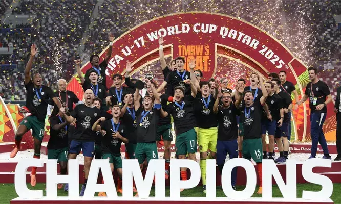 ദോഹ: യൂറോപ്യൻ ശക്തികളായ പോർച്ചുഗലിന് ഫിഫ അണ്ടർ 17 ലോകകപ്പിൽ ചരിത്രകിരീടം. ഖത്തറിലെ ദോഹയിൽ നടന്ന ഫൈനലിൽ ഓസ്ട്രിയയെ ഏകപക്ഷീയമായ ഒരു ഗോളിന് പരാജയപ്പെടുത്തിയാണ് പോർച്ചുഗീസ് യുവനിര ലോകചാമ്പ്യന്മാരായത്. രാജ്യത്തിന്റെ ചരിത്രത്തിലെ ആദ്യ അണ്ടർ 17 ലോകകപ്പ് നേട്ടമാണിത്. ഈ വർഷം യൂറോപ്യൻ അണ്ടർ 17 കിരീടം നേടിയതിന് പിന്നാലെ ലോകകപ്പും സ്വന്തമാക്കി പോർച്ചുഗൽ "ഗോൾഡൻ ഡബിൾ" തികച്ചു.