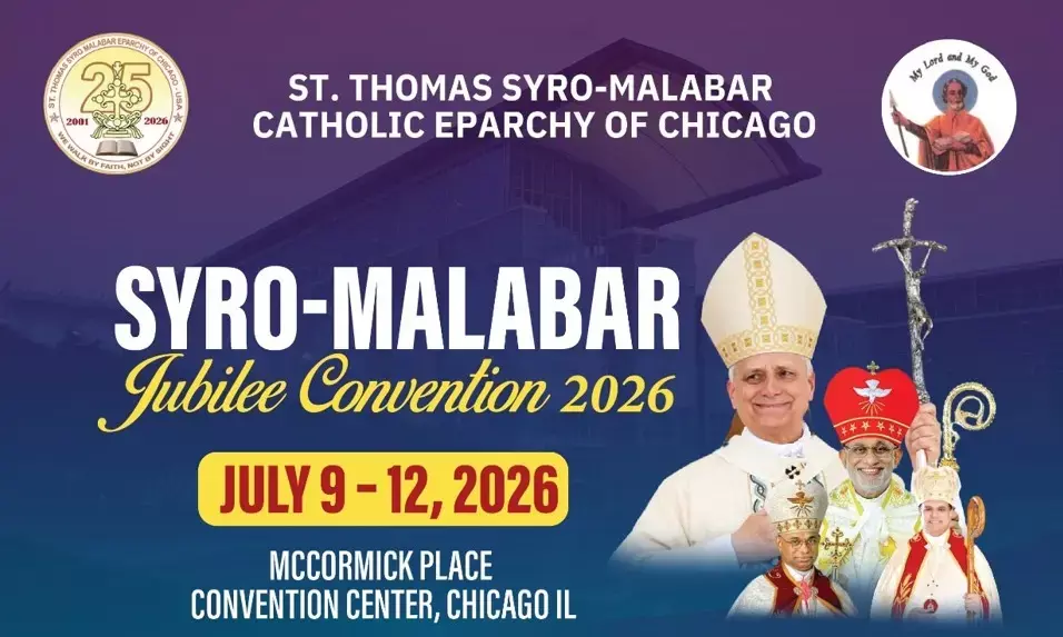 ഷിക്കാഗോ സീറോ മലബാര് രൂപതയുടെ സില്വര് ജൂബിലി ആഘോഷങ്ങളുടെ സമാപനത്തോടനുബന്ധിച്ച് 2026 ജൂലൈ 9, 10, 11, 12 തീയതികളില് ഷിക്കാഗോയിലെ മക്കോര്മിക് പ്ലേസ് കണ്വന്ഷന് സെന്ററില് വെച്ച് നടക്കുന്ന സീറോ മലബാര് കണ്വന്ഷനിലാണ് ഈ സംഗമം.