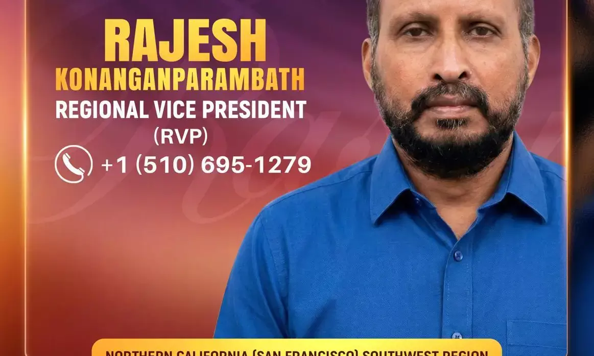 കെ.എച്ച്.എന്.എ സൗത്ത്വെസ്റ്റ് റീജിയണല് (ബേ ഏരിയ) വൈസ് പ്രസിഡന്റായി രാജേഷ് കൊനങ്ങാംപറമ്പത്ത്