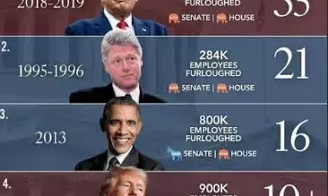 ബില് ക്ലിന്റണ് പ്രസിഡന്റായിരുന്നപ്പോള് 1995-95 ലെ ഷട്ട്ഡൗണിന് ക്ലിന്റണും ഹൗസ് സ്പീക്കര് ന്യൂട്ട് ഗിംഗ്റിച്ചിന്റെ നേതൃത്വത്തിലുള്ള ഡെമോക്രാറ്റുകളും റിപ്പബ്ലിക്കന്മാരും തമ്മിലുള്ള ചെലവിലെ അഭിപ്രായവ്യത്യാസം കാരണമായിരുന്നു അത്. ഇത് തുടര്ച്ചയായ ഷട്ട്ഡൗണുകളല്ല, മറിച്ച് 1995 നവംബര് 14 മുതല് 1995 നവംബര് 19 വരെയും പിന്നീട് 1995 ഡിസംബര് 16 മുതല് 1996 ജനുവരി 6 വരെയും രണ്ട് വ്യത്യസ്ത ഷട്ട്ഡൗണുകളായിരുന്നു.