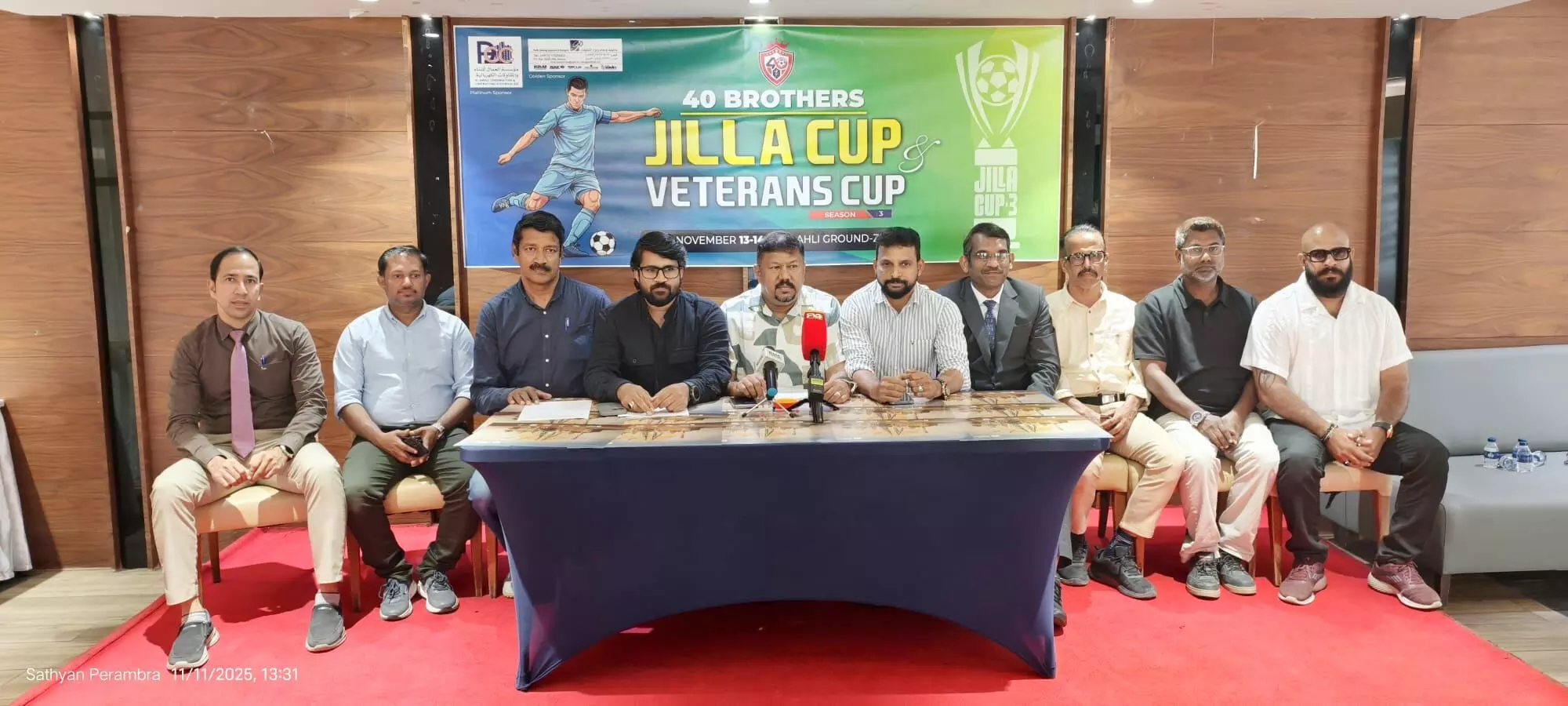 ബഹ്റൈനിലെ ഫുട്ബോള് പ്രേമികളുടെ കൂട്ടായ്മയായ 40 ബ്രദേഴ്സ് 2025 നവംബര് 13-14-15 തിയ്യതികളിലായി ഫുട്ബോള് ടൂര്ണമെന്റ് സംഘടിപ്പിക്കുമെന്നു സംഘാടകര് വാര്ത്ത സമ്മേളനത്തില് അറിയിച്ചു.'ജില്ലാ കപ്പ് സീസണ് 3' എന്ന പേരില് സിഞ്ചിലെ അല് അഹ്ലി സ്റ്റേഡിയത്തിലാണ് മത്സരങ്ങള് സംഘടിപ്പിക്കുന്നത്.