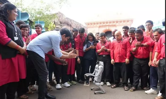 തിരുവനന്തപുരം: ചാടിയും ഓടിയും വിശേഷങ്ങള് പറഞ്ഞും ഡിഫറന്റ് ആര്ട് സെന്ററിലെത്തിയ പുതിയ കാലഘട്ടത്തിന്റെ കൂട്ടുകാരായ റോബോ സംഘം ഭിന്നശേഷിക്കാര്ക്ക് കൗതുകമായി. സെന്ററില് ആരംഭിക്കുന്ന റോബോട്ടിക്സ് പരിശീലന പരിപാടിയുടെ ഭാഗമായാണ് റോബോ ഡോഗ്, വന്ദന, മേധ എന്നീ റോബോകള് എത്തിയത്. കുട്ടികള്ക്ക് ഹസ്തദാനം ചെയ്തും വിശിഷ്ടാതിഥികള്ക്ക് പനിനീര്പ്പൂവ് നല്കിയും നൃത്തം ചെയ്തുമൊക്കെ റോബോകള് കാണികളുടെ ഹൃദയങ്ങളിലിടം പിടിച്ചു.
