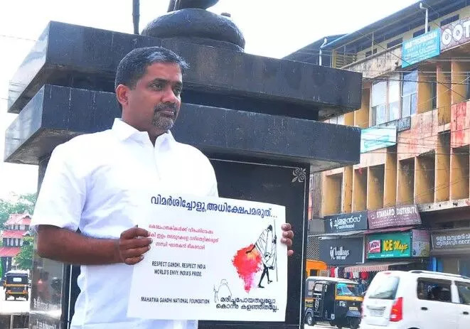 ഗാന്ധി നിന്ദയ്ക്കെതിരെയുള്ള എബിയുടെ ഒറ്റയാൾ പോരാട്ടം അവസാനിക്കുന്നില്ല