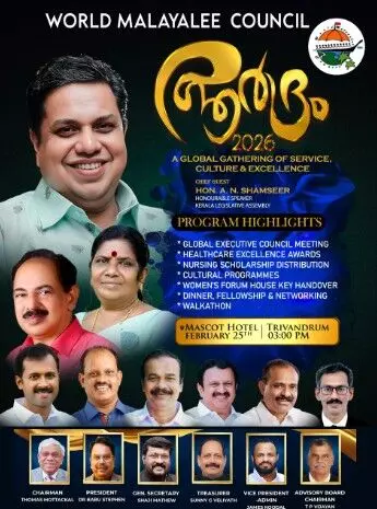 തിരുവനന്തപുരം:വേൾഡ് മലയാളി കൗൺസിൽ (WMC) സംഘടിപ്പിക്കുന്ന “ആർദ്രം 2026 – സേവനത്തിന്റെയും സംസ്കാരത്തിന്റെയും മികവിന്റെയും ആഗോള സംഗമം” ഫെബ്രുവരി 25, 2026ന് തിരുവനന്തപുരം മാസ്കോട്ട് ഹോട്ടലിൽ വച്ച് ഭംഗിയായി നടക്കും. ലോകത്തിന്റെ വിവിധ ഭാഗങ്ങളിൽ നിന്നുള്ള മലയാളി നേതാക്കളെയും സാമൂഹിക-രാഷ്ട്രീയ പ്രമുഖരെയും ഒരുമിപ്പിക്കുന്ന മഹാസംഗമമാണിത്.