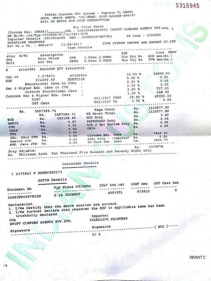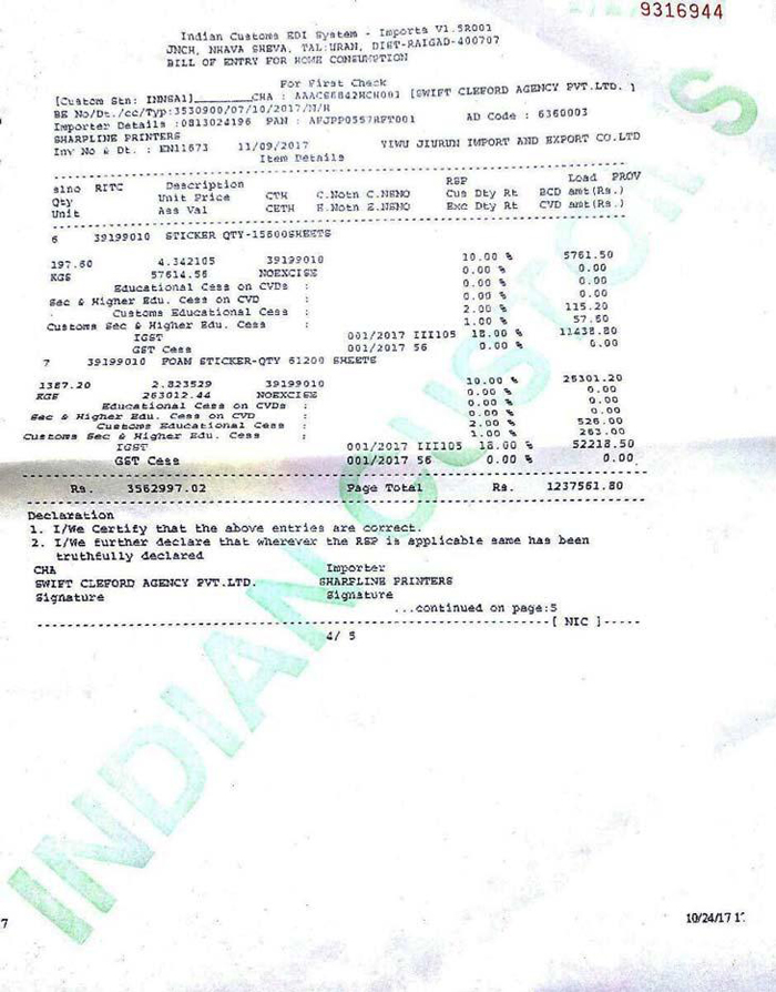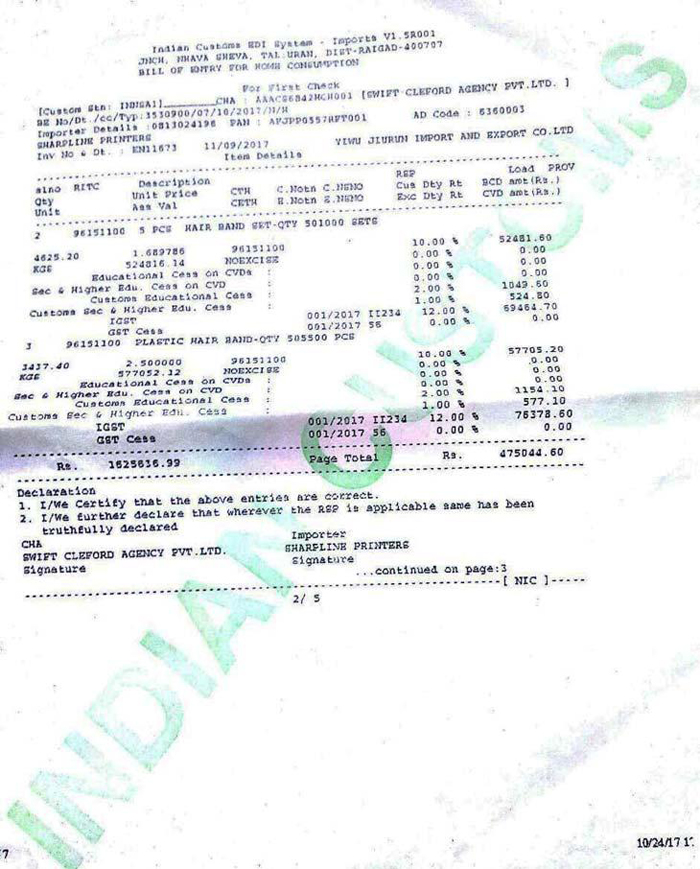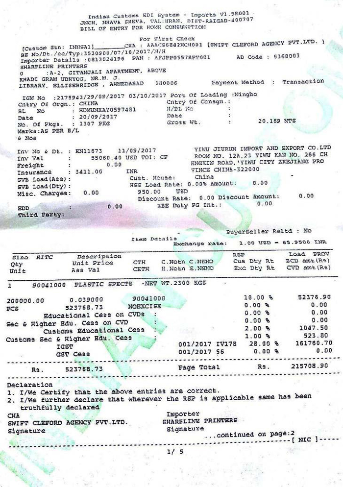 സ്റ്റിക്കറുകൾ, തൊപ്പി, ബലൂൺ, കീചെയിനുകൾ അടക്കമുള്ള വസ്തുക്കളാണ് ചൈനയിൽ നിന്നും കൊണ്ടു വന്നവയിൽപെടുന്നത്. അഹമ്മദാബാദിലെ ഷാർപ് ലൈൻ പ്രിന്റിങ് എന്ന കമ്പനിയാണ് പ്രധാനമായും ഉത്പന്നങ്ങൾ ഇറക്കുമതി ചെയതുകൊടുത്തത്. ചെനയിലെ യിവു നഗരത്തിലുള്ള യിവു ജിയുറുൻ ഇംപോർട്ട് ആൻഡ് എക്സ്പോർട്ട് കമ്പനിയാണ് വിൽപനക്കാർ. ഇതിന്റെ രേഖകൾ സഹിതമാണ് റിപ്പോർട്ട് നൽകിയിട്ടുള്ളത്.