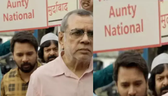 ട്രെയിലറിൽ, പരേഷ് റാവൽ അവതരിപ്പിക്കുന്ന വിഷ്ണുദാസ് എന്ന കഥാപാത്രത്തിനെതിരെ ഒരു സംഘം ആളുകൾ പ്രതിഷേധിക്കുന്ന രംഗമുണ്ട്. ഇതിൽ പ്രതിഷേധക്കാർ ഉപയോഗിക്കുന്ന പ്ലക്കാർഡുകളിലൊന്നിലാണ് 'ആന്റി നാഷണൽ' (Anti-National) എന്ന വാക്ക് 'Aunty National' എന്ന് തെറ്റായി എഴുതിയിരിക്കുന്നത്.