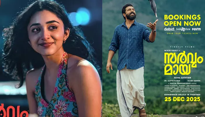 നിവിൻ പോളി ചിത്രം 'സർവ്വം മായ'; പ്രീതി മുകുന്ദന്റെ ക്യാരക്ടർ പോസ്റ്റർ പുറത്ത്; തിയറ്ററുകൾ ചിരിയുടെ പൂരപ്പറമ്പാക്കാൻ അഖിൽ സത്യൻ ചിത്രം
