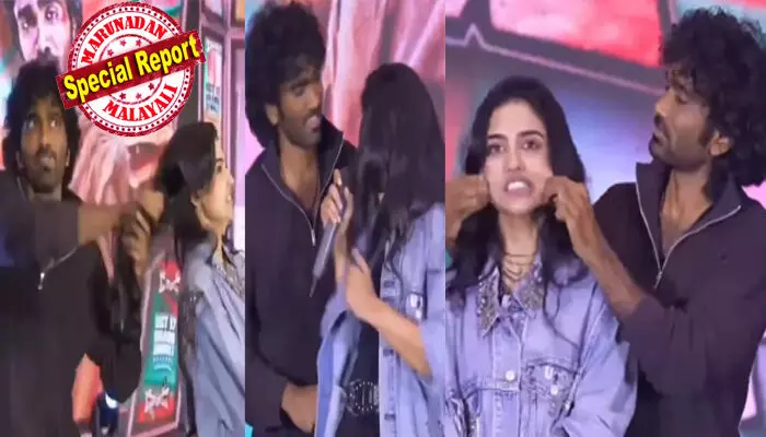 ഇതെല്ലാം 'ക്യൂട്ട്' എന്നാണോ വിചാരം; ഒന്ന് അടങ്ങി നില്ല്..!!; വേദിയിൽ ചിരിച്ചുകൊണ്ട് കൂളായി ഓടിയെത്തി മമിതയുടെ കവിളിലും മുടിയിലും പിടിച്ച് വലിച്ച് നടൻ പ്രദീപ്; സോഷ്യൽ മീഡിയയിൽ പൊരിഞ്ഞ ചർച്ച; വൈറലായി ദൃശ്യങ്ങൾ