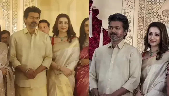 വിജയ്യുടെ ഭാര്യ സംഗീത സ്വര്ണലിംഗം വിവാഹമോചനത്തിന് (Vijay divorce) അപേക്ഷ നല്കിയതിന് പിന്നാലെയാണ് വിജയും തൃഷയും വിവാഹ റിസപ്ഷനില് ഒരുമിച്ച് പങ്കെടുത്തത്. ചടങ്ങില് ഇരുവരും ഒരുമിച്ച് വേദിയിലെത്തി നവദമ്പതികളെ അഭിനന്ദിക്കുകയും ഫോട്ടോകള്ക്ക് പോസ് ചെയ്യുകയും ചെയ്തിരുന്നു.