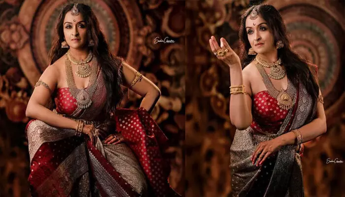 തിരുവനന്തപുരം: നർത്തകിയും നടിയുമായ ശാലു മേനോൻ അടുത്തിടെ സോഷ്യൽ മീഡിയയിൽ പങ്കുവെച്ച 'കാന്താര' ഫോട്ടോഷൂട്ട് സാമൂഹമാധ്യമങ്ങളിൽ വലിയ ശ്രദ്ധ നേടിയിരുന്നു. ചിത്രത്തിൽ നായികയായ കനകവതിയുടെ വേഷം പുനരവതരിപ്പിച്ചാണ് ശാലു എത്തിയത്. രാജകീയ പ്രൗഢിയോടെയുള്ള വസ്ത്രങ്ങളും ആഭരണങ്ങളും അണിഞ്ഞ്, 'കാന്താര'യിലെ കൊട്ടാരത്തിന് സമാനമായ പശ്ചാത്തലത്തിൽ എടുത്ത ചിത്രങ്ങൾ തരംഗമായിരുന്നു. ചെറിയ ശ്രമമാണ്. ക്ഷമിക്കണം' എന്ന അടിക്കുറിപ്പോടെയാണ് താരം പങ്കുവെച്ചത്.