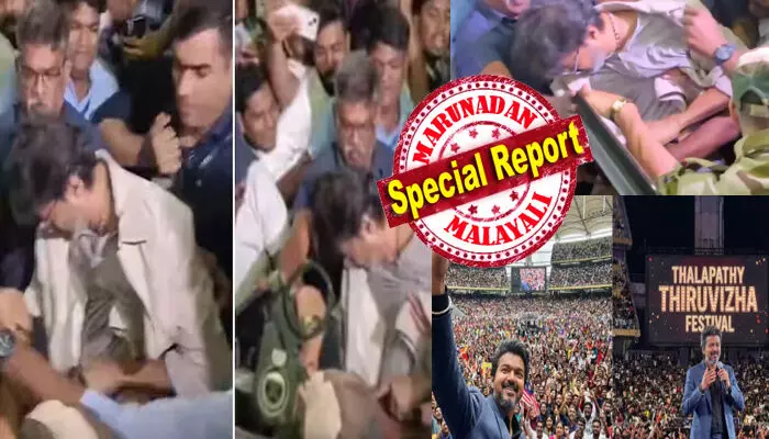 എല്ലാവരുടെയും കണ്ണ് നിറയിച്ച് മലേഷ്യയിലെ ആ ഫെയർവെൽ പരിപാടി കഴിഞ്ഞെത്തിയ ജനനായകൻ; ചെന്നൈ എയർപോർട്ടിൽ വന്നിറങ്ങിയതും പൊല്ലാപ്പ്; താരത്തിനെ ഈച്ച പൊതിയുന്ന പോലെ പൊതിഞ്ഞ് ആരാധകർ; സ്റ്റെപ്പിൽ തട്ടി നിലത്തുവീണു; എല്ലാം കണ്ട് 'വാ'പൊളിച്ച് നിന്ന് സെക്യൂരിറ്റി ഗാർഡ്സ്