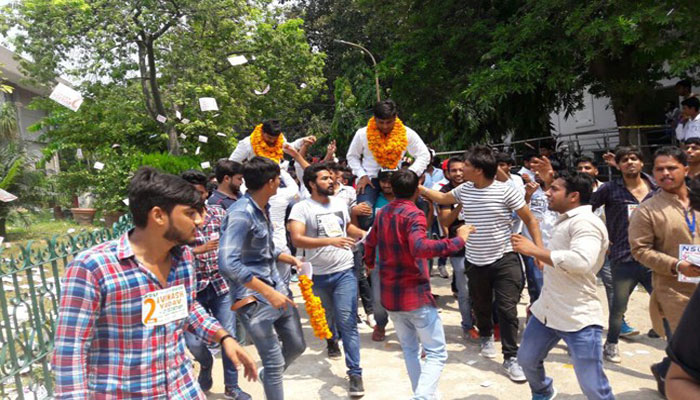 2007 മുതൽ ഡൽഹി സർവകലാശാലയിൽ എ.ബി.വി.പിയാണ് യൂണിയൻ നയിക്കുന്നത്. ജെ.എൻ.യു തെരഞ്ഞെടുപ്പിന് പിന്നാലെ ഡൽഹിയിലും അടിപതറിയതോടെ എ.ബി.വി.പി പ്രതിരോധത്തിലായിരിക്കുകയാണ്.എൻ.എസ്.യു.ഐയുടെ പ്രസിഡണ്ട് സ്ഥാനാർത്ഥിയായ റോക്കി തുഷീദ് എ.ബി.വി.പിയുടെ രജത് ചൗധരിയെ പരാജയപ്പെടുത്തി. വൈസ് പ്രസിഡണ്ട്, ജോയിന്റ് സെക്രട്ടറി സ്ഥാനത്തേക്കും എൻ.എസ്.യു.ഐയുടെ സ്ഥാനാർത്ഥികൾക്കാണ് വിജയം.