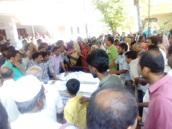 മൃതദേഹങ്ങൾ നാട്ടിലെത്തുന്നുവെന്നറിഞ്ഞ് ഇന്നലെ രാവിലെ മുതൽ നാടിന്റെ നാനാ ഭാഗത്തുനിന്നും നവാസിന്റെ വീട്ടിലേക്ക് ജനമൊഴുകിയെത്തി. ശോകമൂകമായ അന്തരീക്ഷത്തിൽ 11 മണിയോടെ വീട്ടിലെത്തിയ ആംബുലൻസിൽ നിന്നും കുട്ടികളുടെ ചേതനയറ്റ ശരീരം പുറത്തേക്കെടുത്തപ്പോൾ പിതാവ് നവാസിന്റെ അലമുറയിട്ടുള്ള പൊട്ടികരച്ചിൽ കണ്ടുനിന്ന ആയിരങ്ങളുടെ കണ്ണിനെ ഈറനണിയിച്ചു.