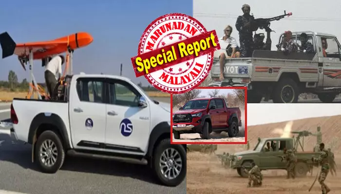 യുദ്ധഭൂമിയിൽ ടാങ്കുകളെയും കവചിത വാഹനങ്ങളെയും പോലെ തന്നെ ഇന്ന് ഭയം വിതയ്ക്കുന്ന ഒന്നായി ജപ്പാന്റെ കരുത്തായ ടൊയോട്ട ഹൈലക്സ് (Toyota Hilux) മാറിയിരിക്കുന്നു. ലോകത്തിന്റെ മറ്റ് ഭാഗങ്ങളിൽ വളരെ ശാന്തനായും മാന്യനായും കുടുംബവാഹനമായും പെരുമാറുന്ന ഈ പിക്കപ്പ് ട്രക്ക്, മിഡിൽ ഈസ്റ്റിലെയും ആഫ്രിക്കയിലെയും യുദ്ധമേഖലകളിൽ എത്തിയാൽ ഭാവം മാറും. അവിടെ ഇവൻ വെറുമൊരു വാഹനമല്ല, മാരകമായ ഒരു മിസൈൽ ലോഞ്ചറാണ്.