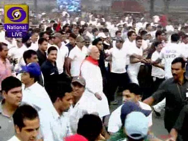 കൂട്ടയോട്ടത്തിൽ പങ്കെടുക്കാൻ എത്തിയവർക്കുവേണ്ടി പ്രധാനമന്ത്രി ദേശീയ പുനരൈക്യ പ്രതിജ്ഞയും ചൊല്ലിക്കൊടുത്തു. കാലത്ത് ഏഴരയോടെ തന്നെ പട്ടേൽ ചൗക്ക് പാർലമെന്റ് സ്ട്രീറ്റിലെത്തി പട്ടേലിന്റെ സ്മൃതി കുടീരത്തിൽ പുഷ്പാർച്ചന നടത്തിയാണ് മോദി കൂട്ടയോട്ടം ഫ്ലൂഗ് ഓഫ് ചെയ്യാനെത്തിയത്. കേന്ദ്രമന്ത്രിമാരായ സുഷമ സ്വരാജ്, വെങ്കയ്യ നായിഡു എന്നിവരും ചടങ്ങിൽ പങ്കെടുത്തു.