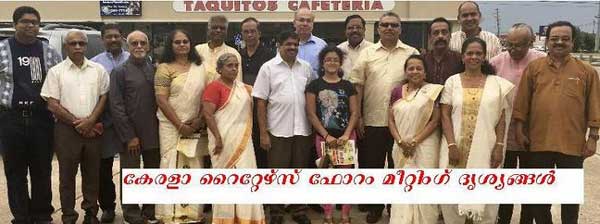 ഹൂസ്റ്റൺ: സെപ്റ്റംബർ മാസത്തിലെ കേരളാ റൈറ്റേഴ്സ് ഫോറത്തിന്റെ സമ്മേളനം സാഹിത്യ ആസ്വാദനനിരൂപണചർച്ചകൾക്കു പുറമെ ഗൃഹാതുരത്വമുണർത്തുന്ന ഓണാഘോഷങ്ങൾക്കു കൂടെ വേദിയായി. സെപ്റ്റംബർ 25ന് വൈകുന്നേരം ഗ്രെയിറ്റർ ഹൂസ്റ്റണിലെ സ്റ്റാഫോർഡിലുള്ള ദേശി റസ്റ്റോറന്റ് ഓഡിറ്റോറിയത്തിൽ കേരള തനിമയാർന്ന വേഷവിധാനങ്ങളോടെയാണ് കേരളാ റൈറ്റേഴ്സ് ഫോറം അംഗങ്ങൾ എത്തിയത്. കേരളാ റൈറ്റേഴ്സ് ഫോറം അധ്യക്ഷൻ മാത്യു നെല്ലിക്കുന്ന് ഏവരേയും പ്രതിമാസ സമ്മേളനത്തിലേക്ക് സ്വാഗതം ചെയ്തു.
