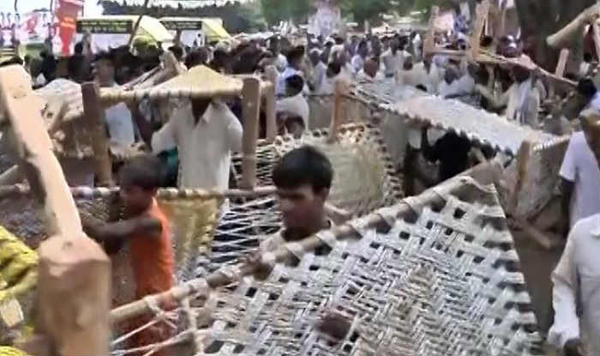 'ചായ്പേ ചർച്ച'യിലൂടെ പേരെടുത്ത മോദിയെ 'കട്ടിൽ ചർച്ച' നടത്തി വീഴ്ത്താൻ രാഹുലിന്റെ തന്ത്രം; നമോ ചായക്കടകളെ വെല്ലാൻ കട്ടിൽ സഭകൾ തീർത്ത് കോൺഗ്രസ് ഉപാധ്യക്ഷന്റെ കിസാൻ യാത്ര; 2500 കിലോമീറ്ററിന്റെ യാത്രയുടെ തുടക്കം 2000 കട്ടിലുകൾ നിരത്തിയ വേദിയിൽ വച്ച്