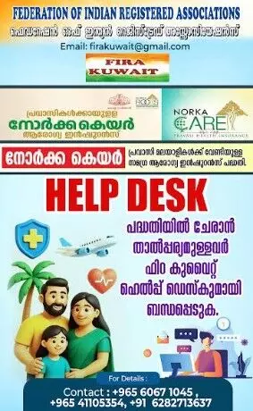 ഫിറ കുവൈറ്റ് -നോര്ക്ക കെയര് ഇന്ഷുറന്സ് പരിരക്ഷ ഹെല്പ്പ് ഡെസ്ക്