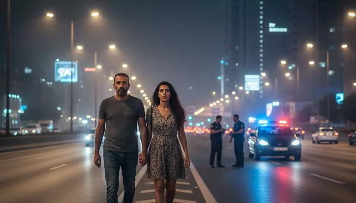 പതിവ് പട്രോളിങ്ങിനിടെയാണ് ഉദ്യോഗസ്ഥർ ഇവരെ ശ്രദ്ധിച്ചത്. ഇവരുടെ നടത്തം തങ്ങൾക്കും മറ്റ് യാത്രക്കാർക്കും അപകടമുണ്ടാക്കാൻ സാധ്യതയുണ്ടെന്ന് മനസ്സിലാക്കിയ ഉദ്യോഗസ്ഥർ തടഞ്ഞുനിർത്തി. പരിശോധനയിൽ ഇരുവരും ലഹരി ഉപയോഗിച്ചിട്ടുണ്ടെന്ന് സ്ഥിരീകരിച്ചു. കൂടാതെ, യുവാവ് അധികൃതർ തിരയുന്ന തടവ് ശിക്ഷ ലഭിച്ച വ്യക്തിയാണെന്നും കണ്ടെത്തി. ഇരുവരെയും കസ്റ്റഡിയിലെടുത്ത് തുടർനടപടികൾക്കായി ബന്ധപ്പെട്ട അതോറിറ്റിക്ക് കൈമാറി.