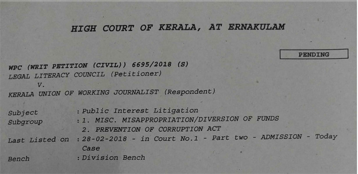 കെയുഡബ്ല്യൂജെ ഡൽഹി ഘടകത്തിലെ അഴിമതി യൂണിയന്റെ സംസ്ഥാന സമ്മേളനത്തിൽ ഉൾപ്പെടെ വലിയ കോലാഹലങ്ങൾക്ക് കാരണമായിരുന്നു. എന്നാൽ ഇക്കാര്യത്തിൽ അന്വേഷണം നടത്തുമെന്നും നടപടിയുണ്ടാവുമെന്നും യൂണിയൻ നേതൃത്വം വ്യക്തമാക്കിയെങ്കിലും ഒന്നും നടന്നില്ല. സർക്കാരിന് നൽകിയ പരാതിയിലും അേന്വഷണം നടക്കാത്ത സാഹചര്യമുണ്ടായി. ഇതെല്ലാം ചർച്ചയാവുന്നതിനിടെയാണ് വിഷയം കോടതിയുടെ പരിഗണനയിൽ എത്തുന്നത്.